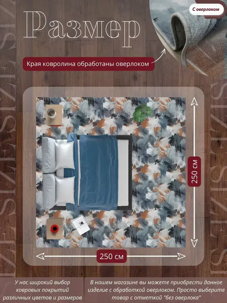 Ковролин метражом 2,5х2,5 м, безворсовой "Акварель", многоцветный с оверлоком
