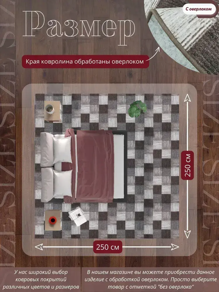 Ковролин метражом 2,5х2,5 м, безворсовой "Плитка", коричнево-серая с оверлоком