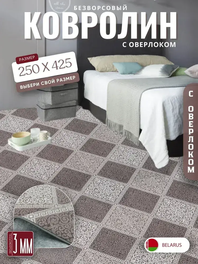 Ковролин метражом 2,5х4,25 м, безворсовой "Каскад", бежево-коричневый с оверлоком