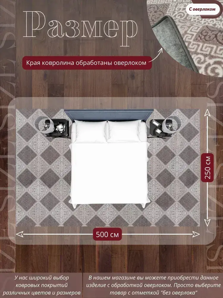 Ковролин метражом 2,5х5 м, безворсовой "Каскад", бежево-коричневый с оверлоком
