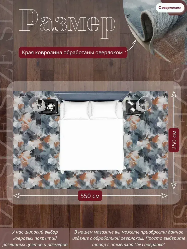 Ковролин метражом 2,5х5,5 м, безворсовой "Акварель", многоцветный с оверлоком