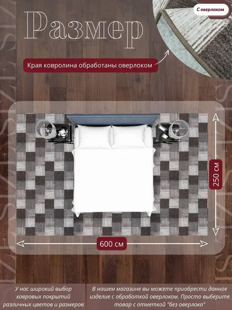 Ковролин метражом 2,5х6 м, безворсовой "Плитка", коричнево-серая с оверлоком