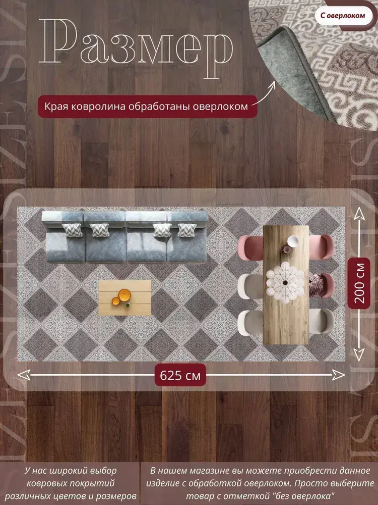 Ковролин метражом 2х6,25 м, безворсовой "Каскад", бежево-коричневый с оверлоком
