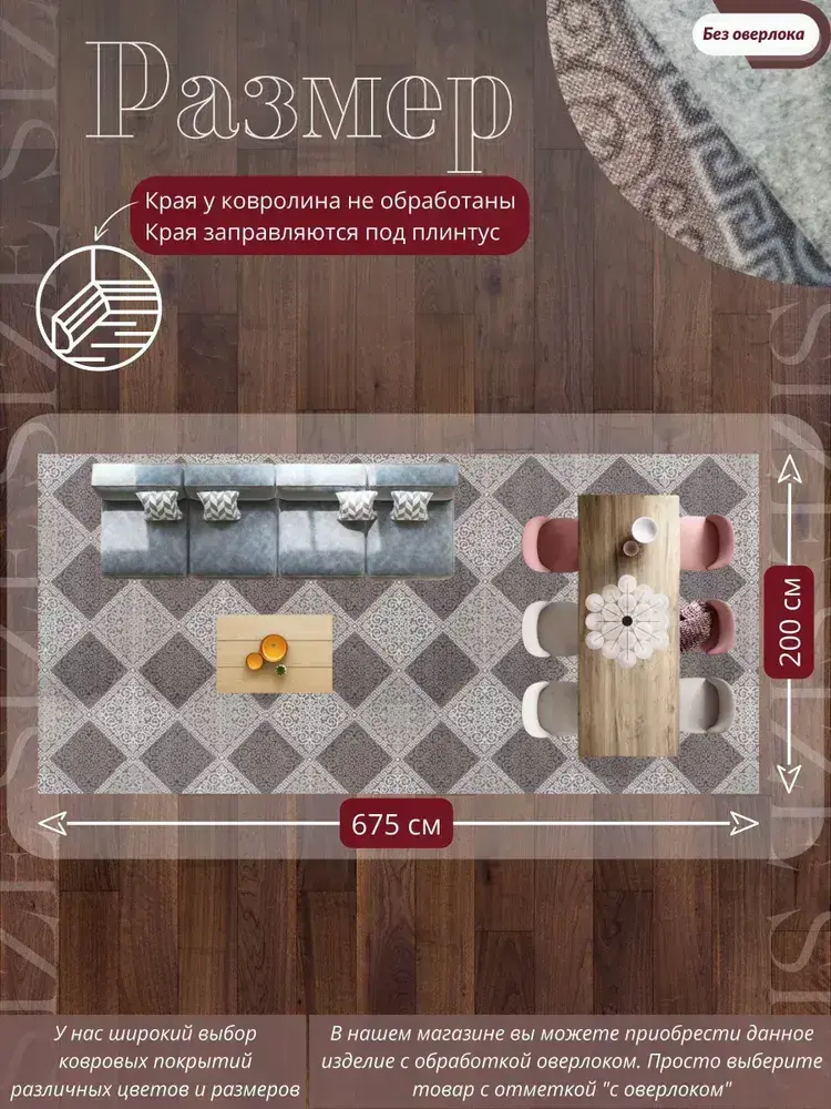 Ковролин метражом 2х6,75 м, безворсовой "Каскад", бежево-коричневый без оверлока