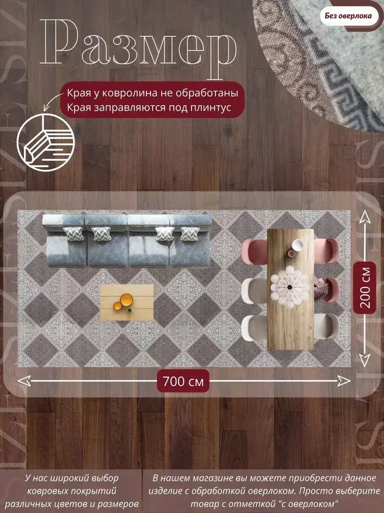 Ковролин метражом 2х7 м, безворсовой "Каскад", бежево-коричневый без оверлока