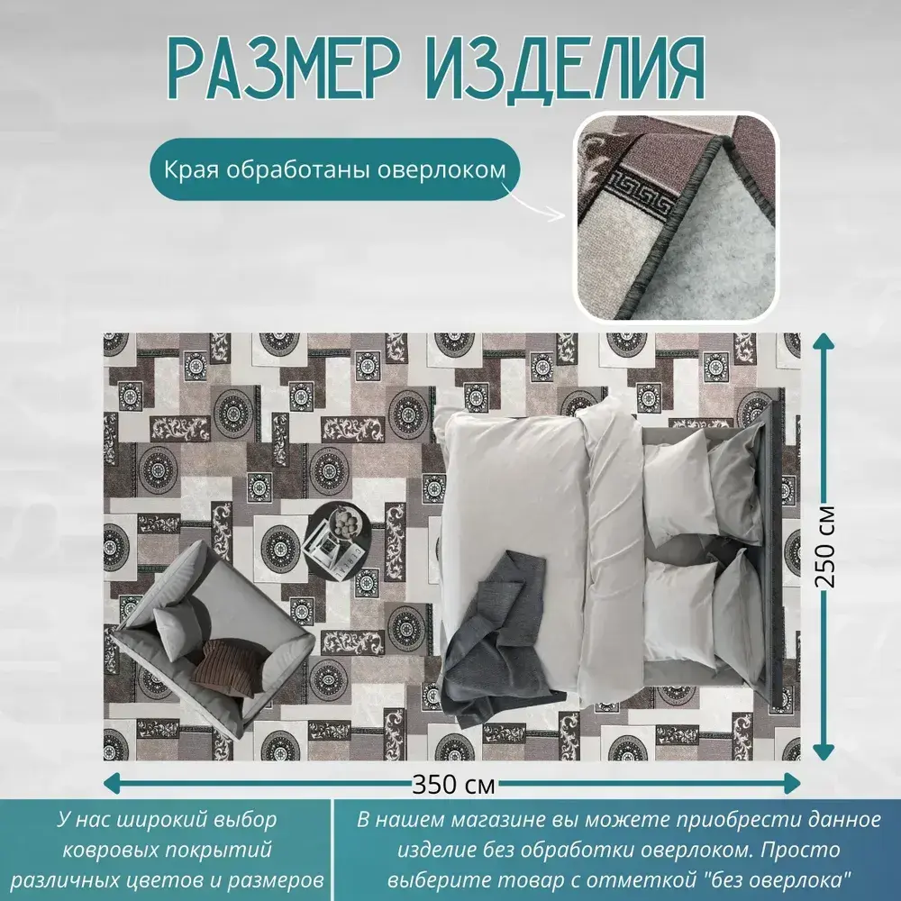 Ковролин метражом 3,5х4 м, без ворса "Пэчворк", бежево-коричневый с оверлоком