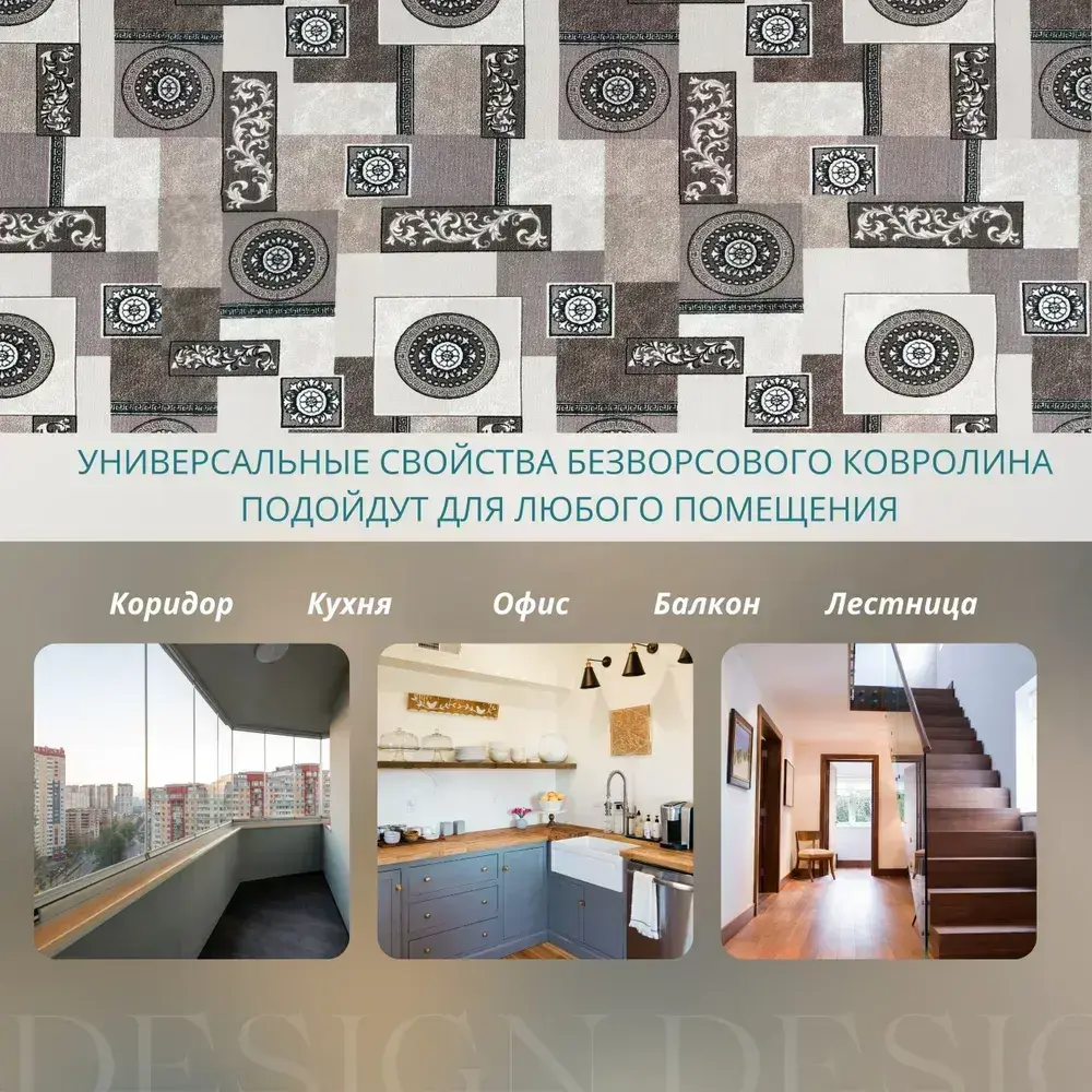 Ковролин метражом 3,5х6,25 м, без ворса "Пэчворк", бежево-коричневый с оверлоком