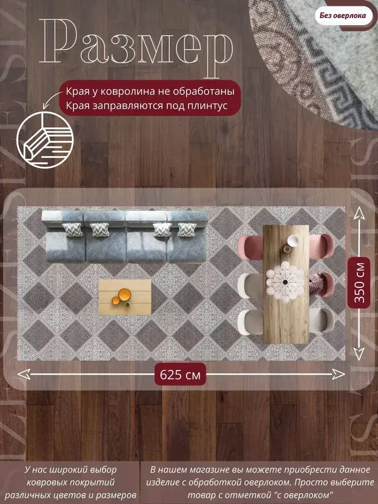 Ковролин метражом 3,5х6,25 м, безворсовой "Каскад", бежево-коричневый без оверлока