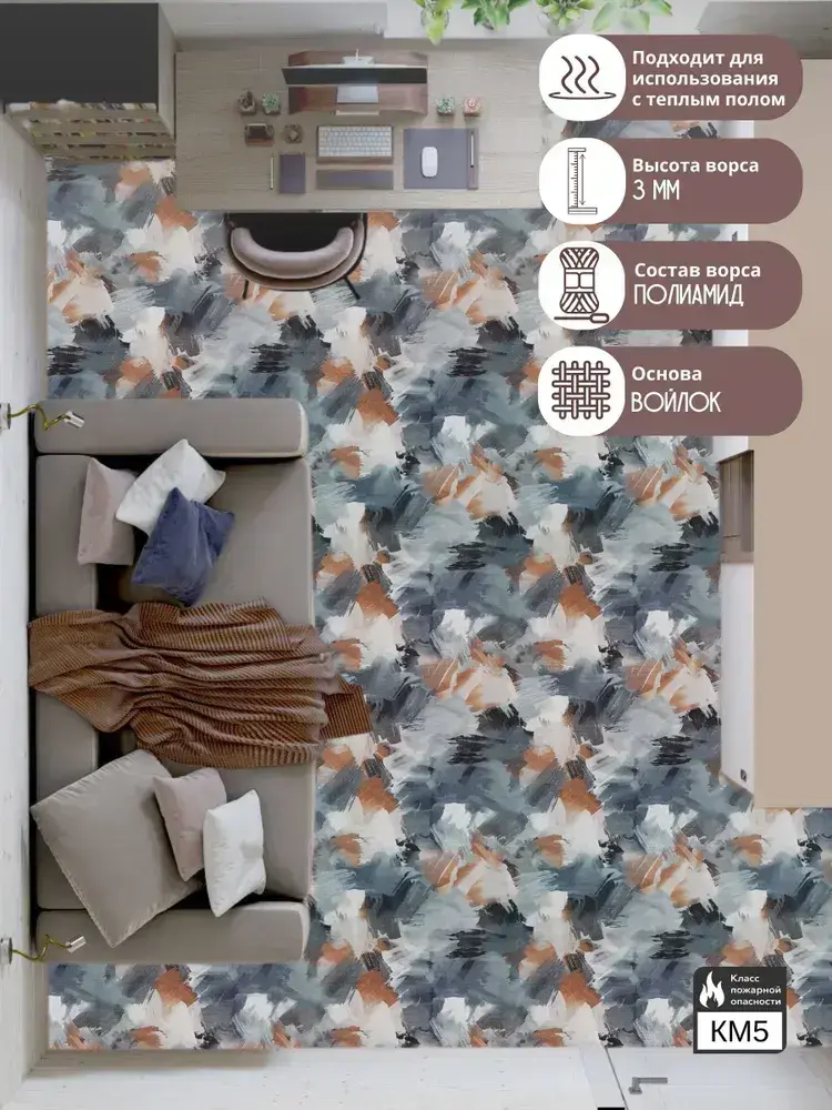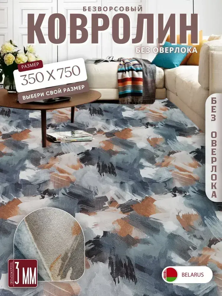 Ковролин метражом 3,5х7,5 м, безворсовой "Акварель", многоцветный без оверлока