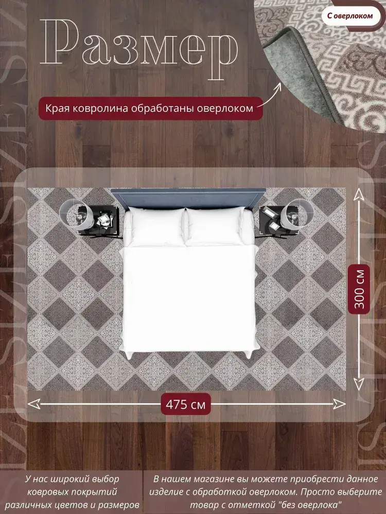Ковролин метражом 3х4,75 м, безворсовой "Каскад", бежево-коричневый с оверлоком