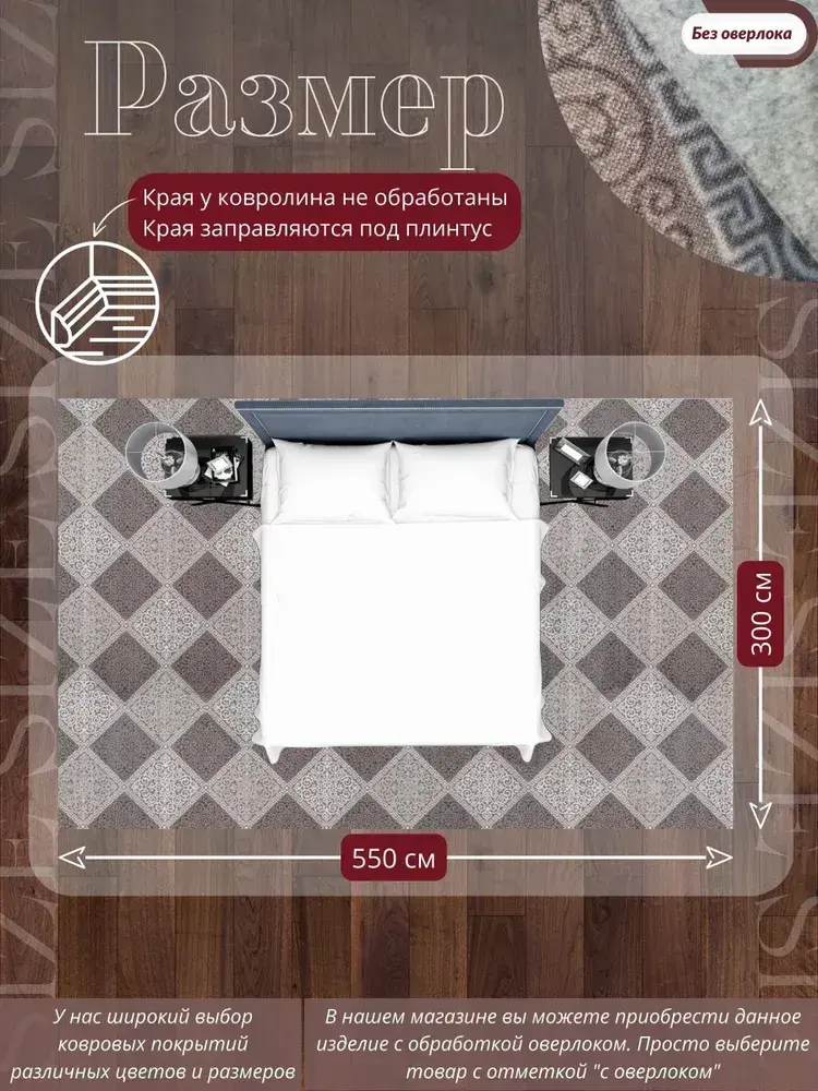 Ковролин метражом 3х5,5 м, безворсовой "Каскад", бежево-коричневый без оверлока