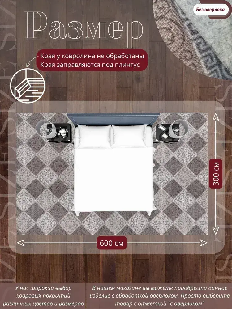 Ковролин метражом 3х6 м, безворсовой "Каскад", бежево-коричневый без оверлока