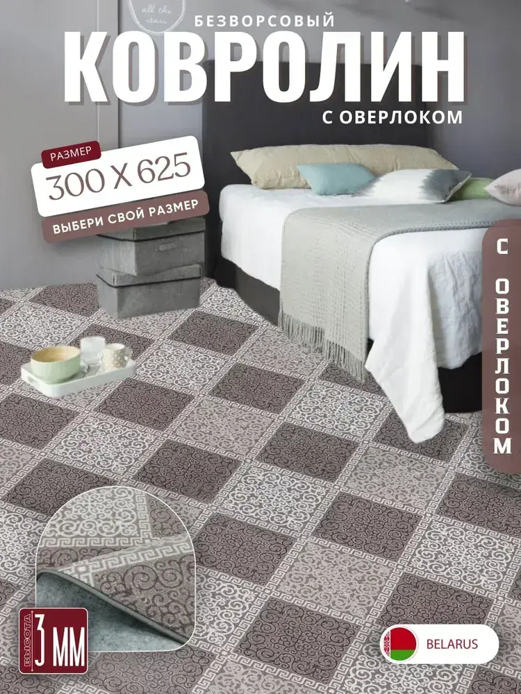 Ковролин метражом 3х6,25 м, безворсовой "Каскад", бежево-коричневый с оверлоком