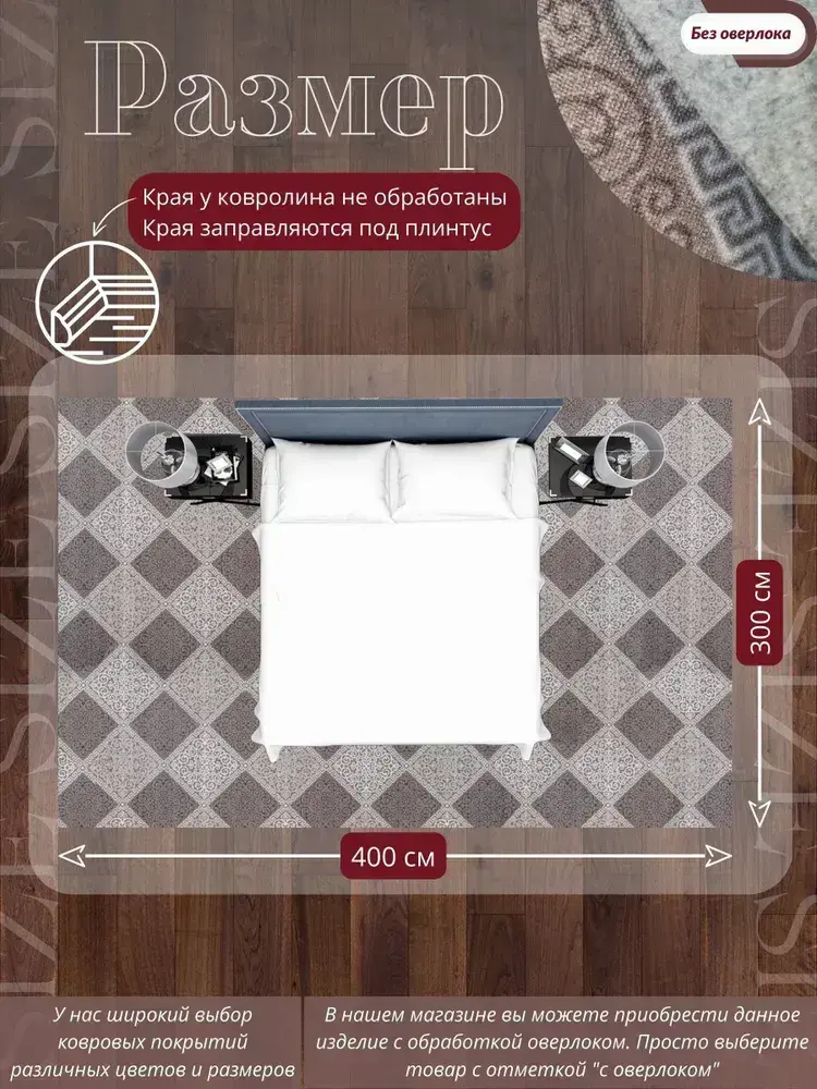 Ковролин метражом 4х3 м, безворсовой "Каскад", бежево-коричневый без оверлока
