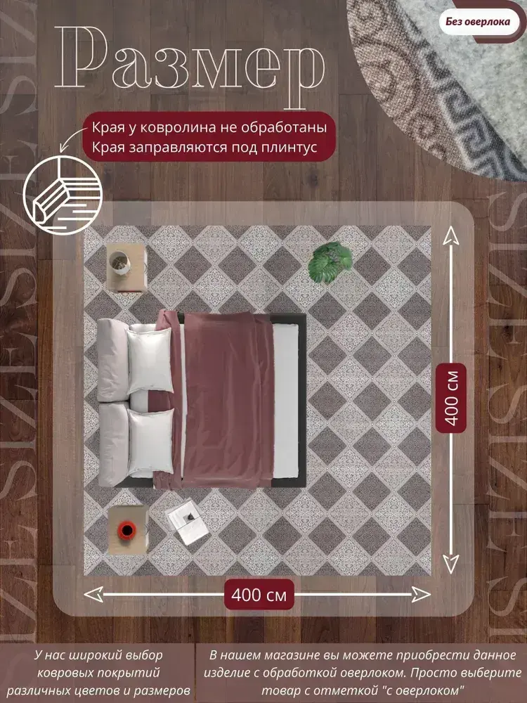 Ковролин метражом 4х4 м, безворсовой "Каскад", бежево-коричневый без оверлока