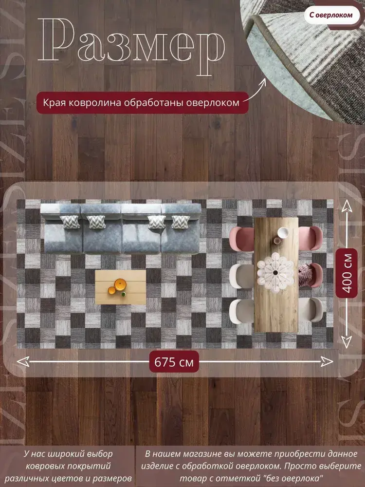 Ковролин метражом 4х6,75 м, безворсовой "Плитка", коричнево-серая с оверлоком