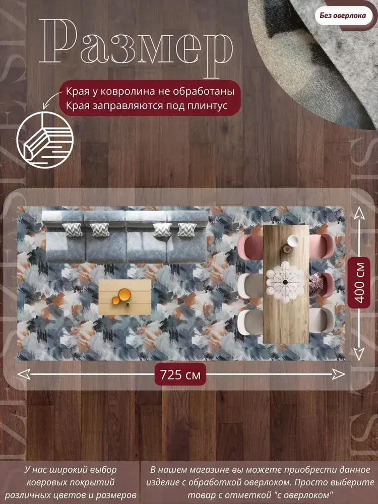 Ковролин метражом 4х7,25 м, безворсовой "Акварель", многоцветный без оверлока