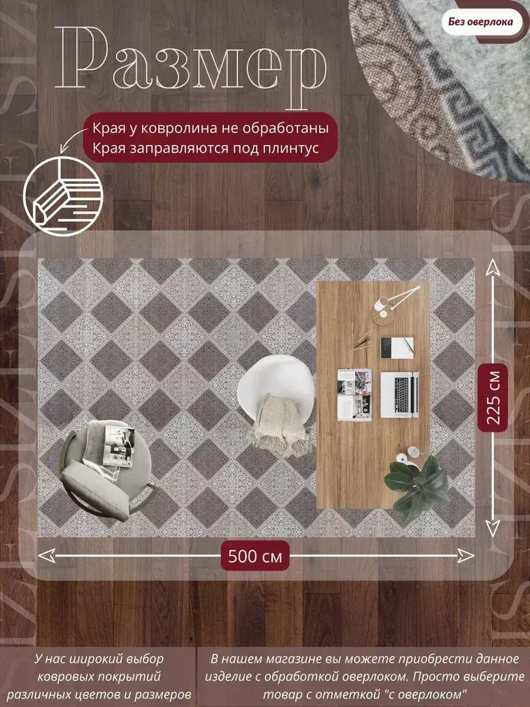 Ковролин метражом 5х2,25 м, безворсовой "Каскад", бежево-коричневый без оверлока