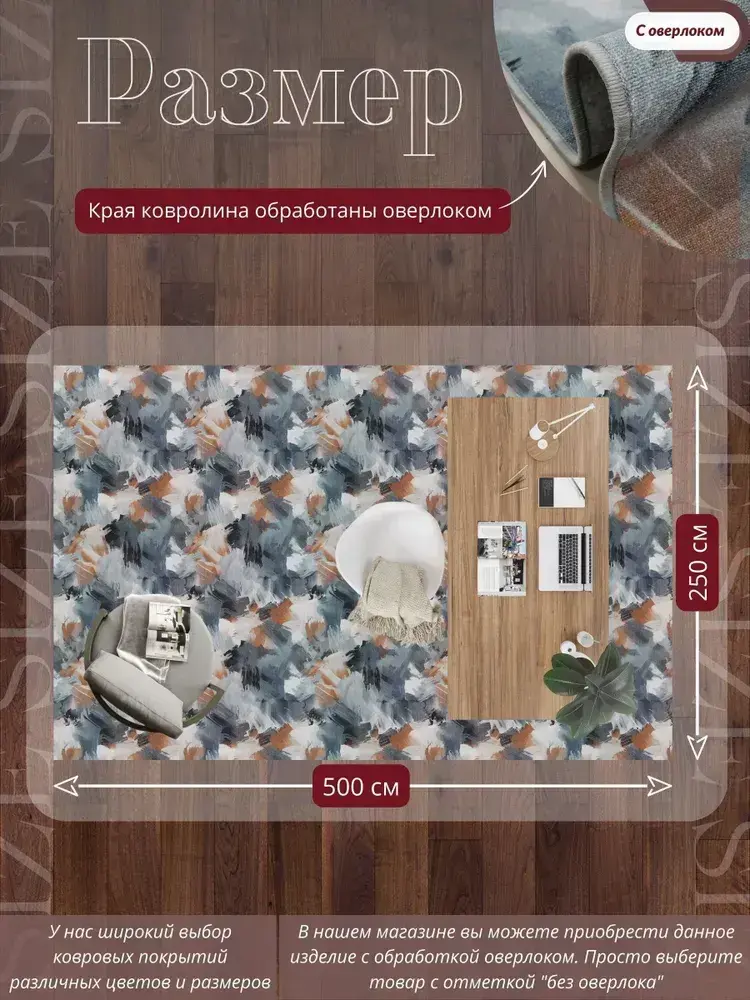 Ковролин метражом 5х2,5 м, безворсовой "Акварель", многоцветный с оверлоком