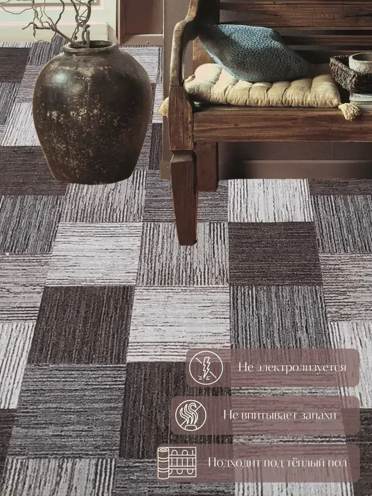 Ковролин метражом 5х2,5 м, безворсовой "Плитка", коричнево-серая с оверлоком