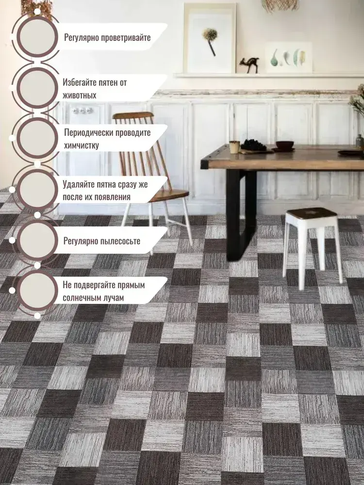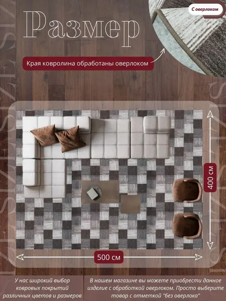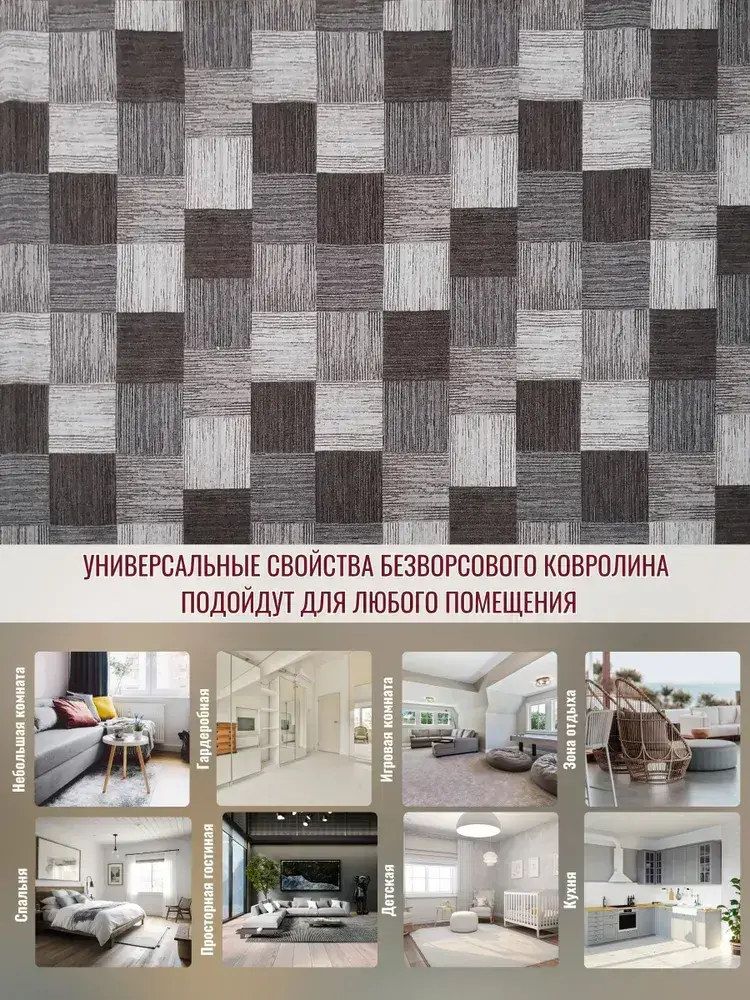 Ковролин метражом 5х4 м, безворсовой "Плитка", коричнево-серая с оверлоком