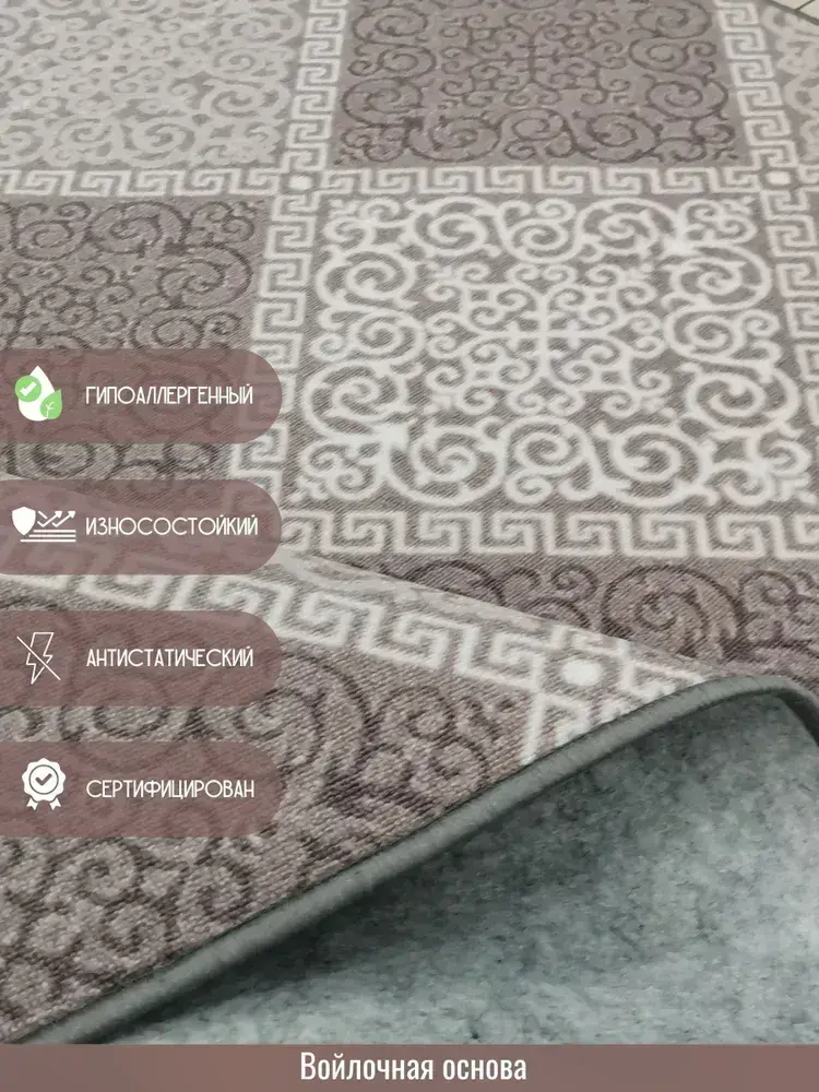 Ковролин метражом 5х5,75 м, безворсовой "Каскад", бежево-коричневый с оверлоком