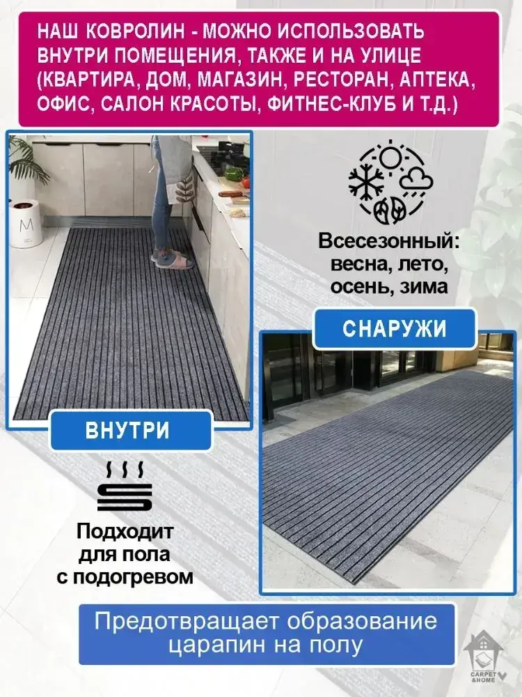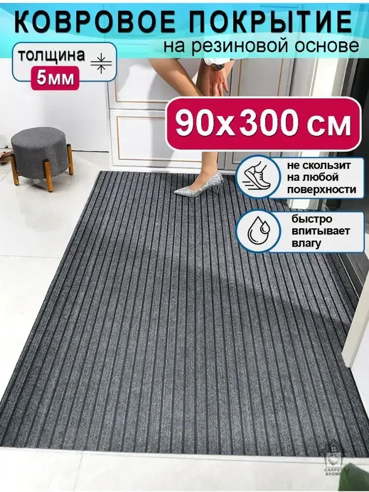 Ковролин Юпитер на резиновой основе 90х300 для дома и офиса Серый