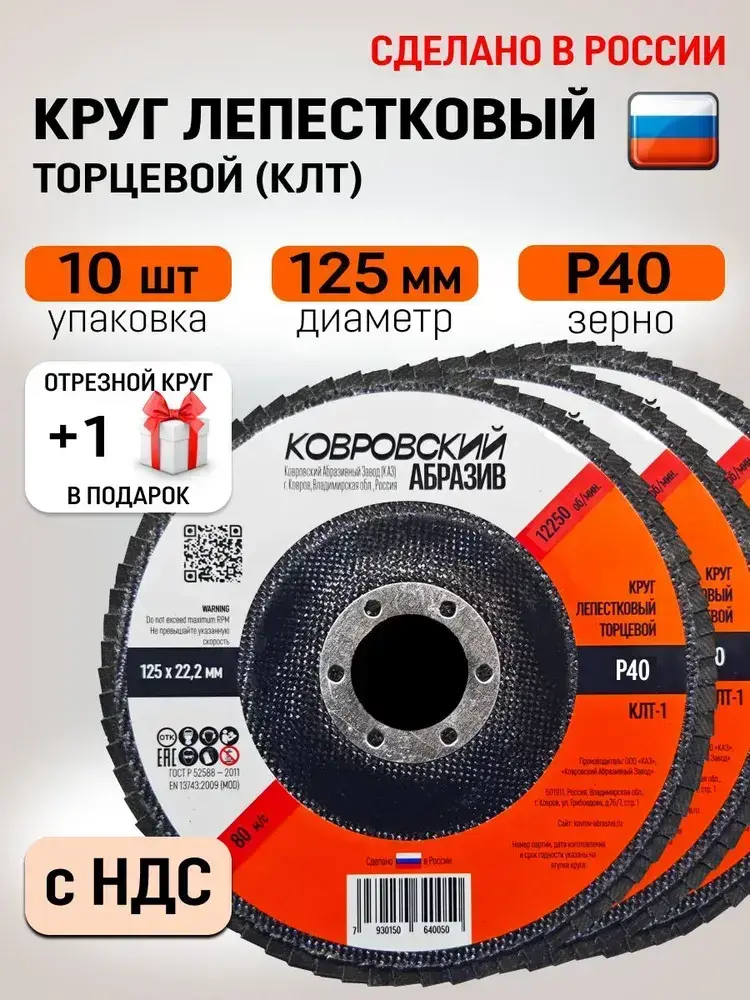 Ковровский Абразив Круг лепестковый торцевой 125 x 22.23; P40