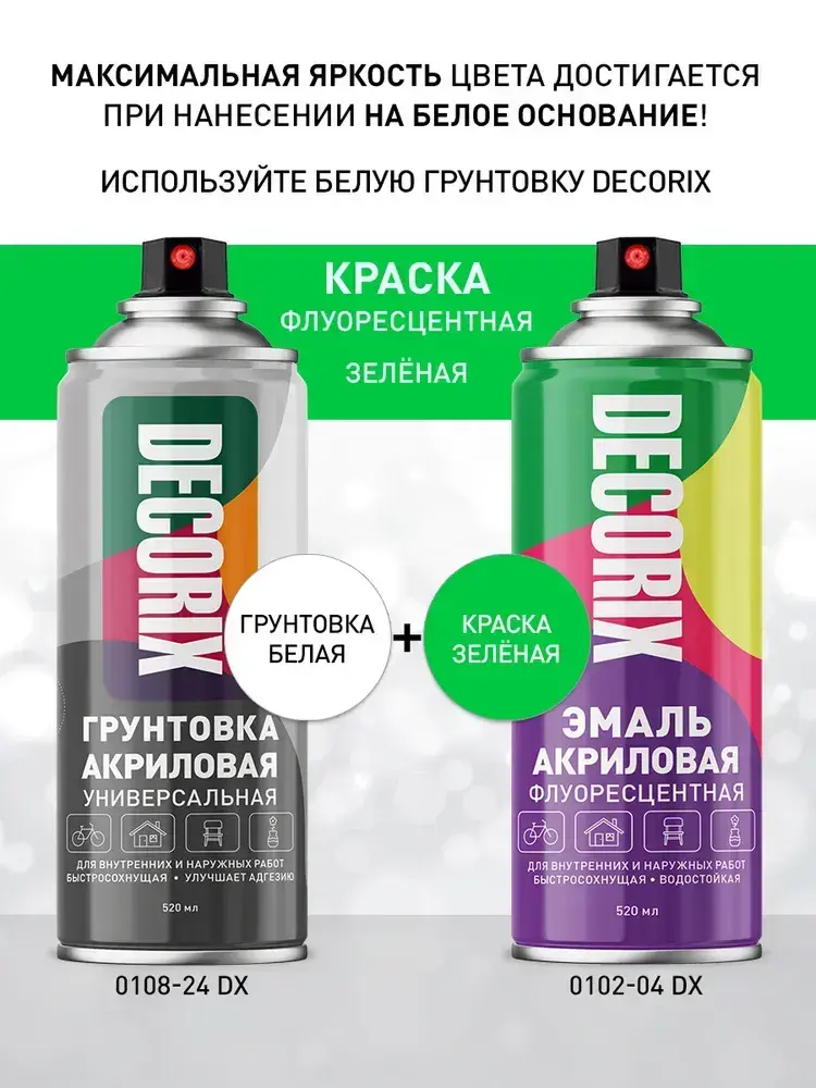 Краска аэрозольная зеленая флуоресцентная матовая DECORIX - эмаль акриловая в баллончике для любых поверхностей 520 мл