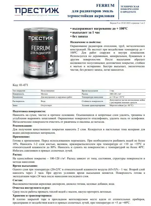 Краска БЕЛАЯ термостойкая для радиаторов 0,9 кг. Краска акриловая FERRUM ПРЕСТИЖ Мастер. Эмаль для радиаторов
