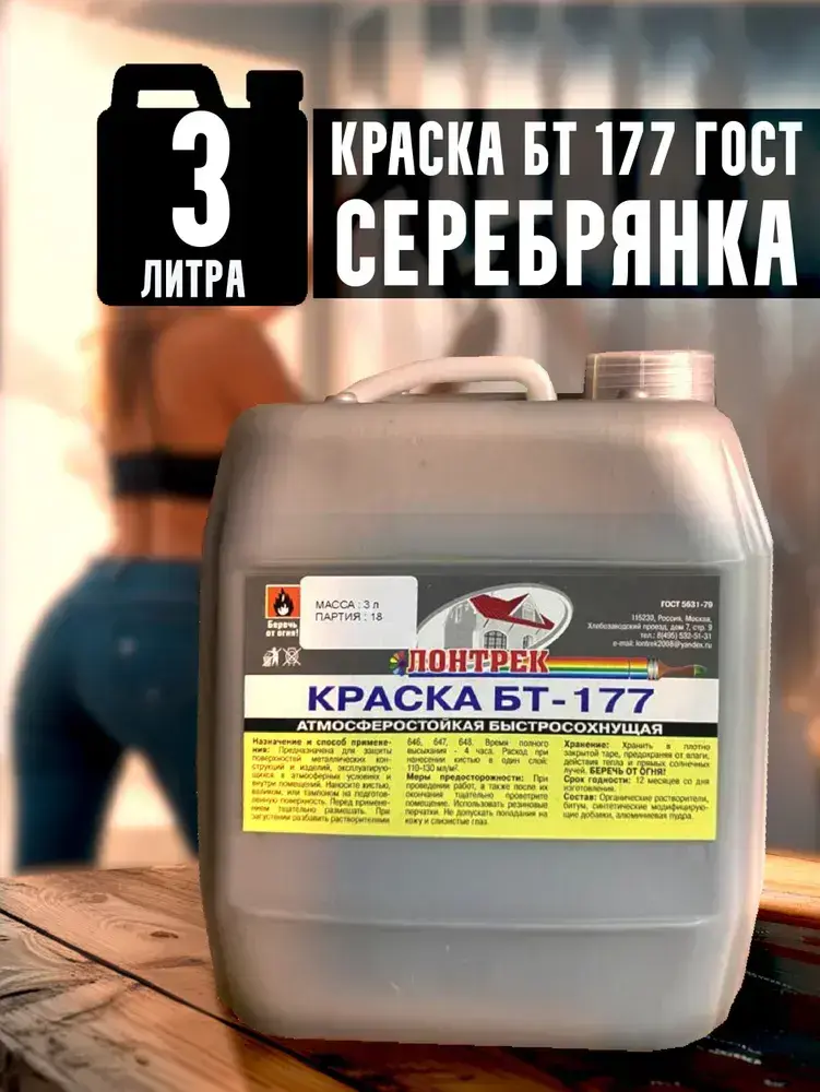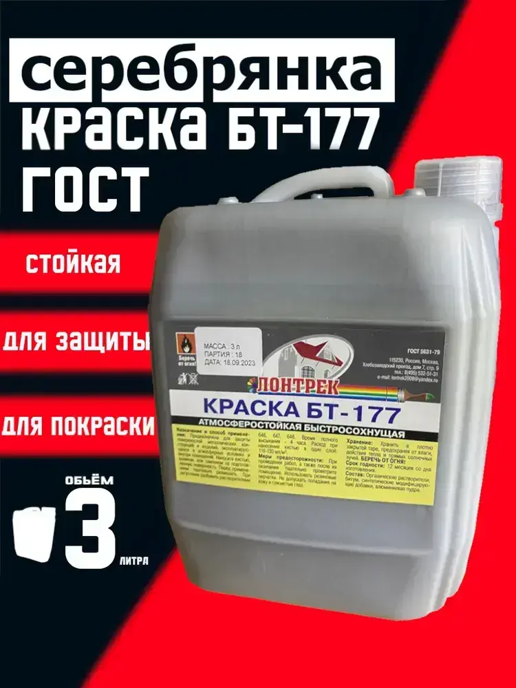 Краска БТ-177 Серебрянка, 3 л., Лонтрек для металла, дерева и бетона
