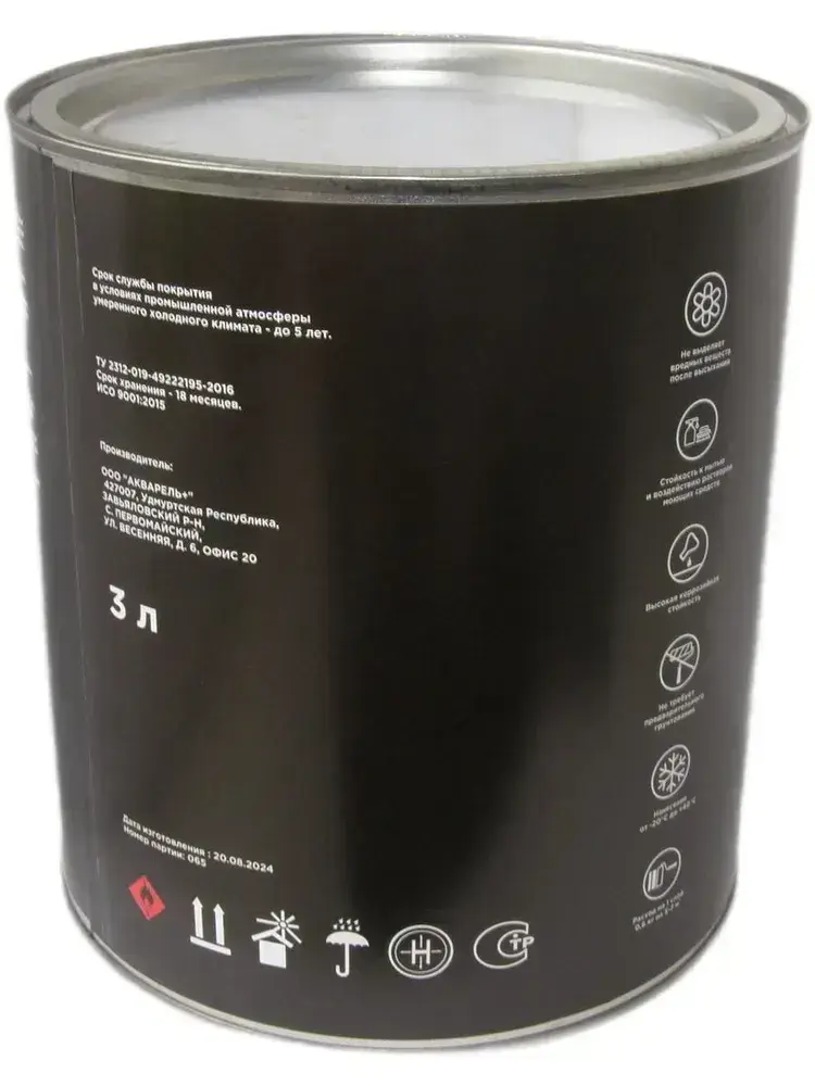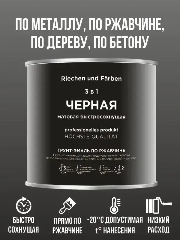 Краска Быстросохнущая, Гладкая, до 90°, Матовое покрытие, 3 л, 2.4 кг, черный матовый