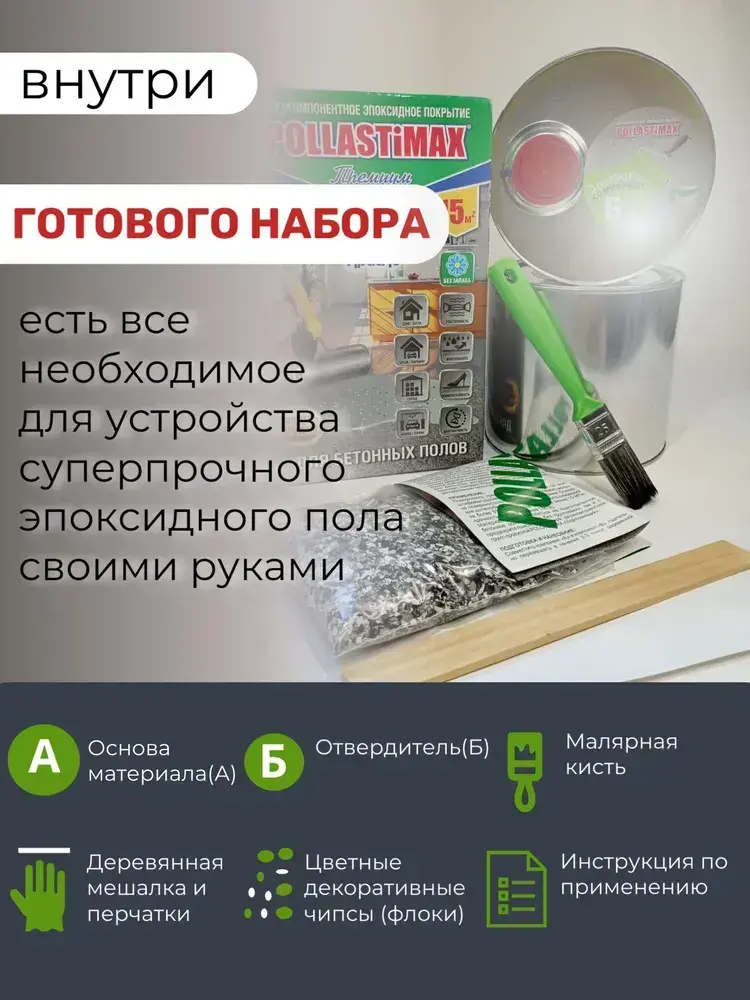 Краска для бетонных полов, эпоксидная эмаль Pollastimax Премиум, серая, 6,2 кг