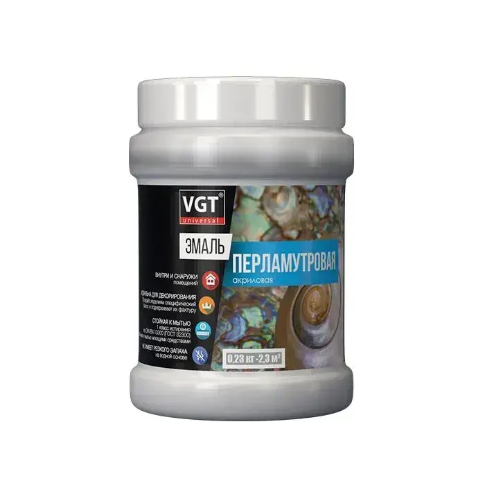 Краска для декора универсальная перламутровая VGT серебристо-белый 0,23 кг