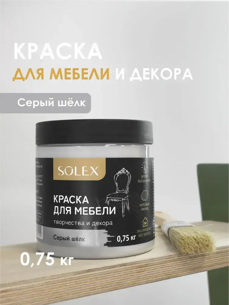 Краска для мебели без запаха цвет Серый Шёлк SOLEX 0,75кг