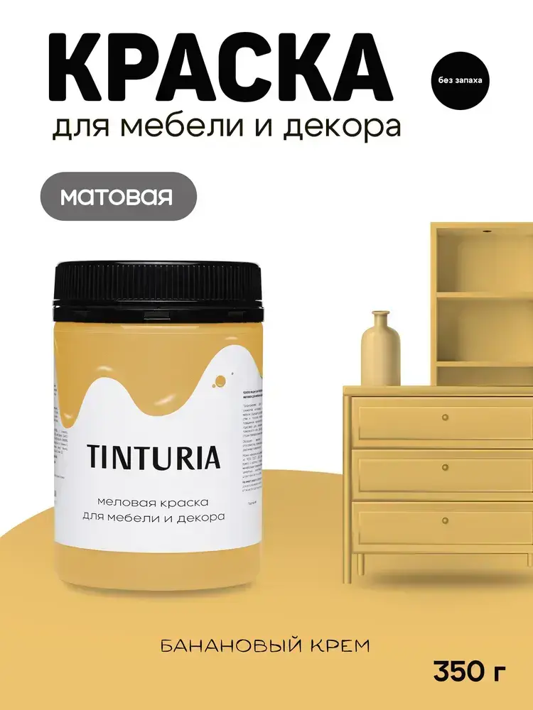 Краска для мебели и декора меловая TINTURIA матовая без запаха банановый крем 0,35 кг