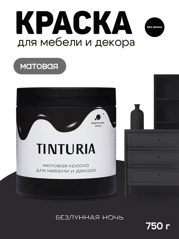 Краска для мебели и декора меловая TINTURIA матовая без запаха безлунная ночь 0,75 кг