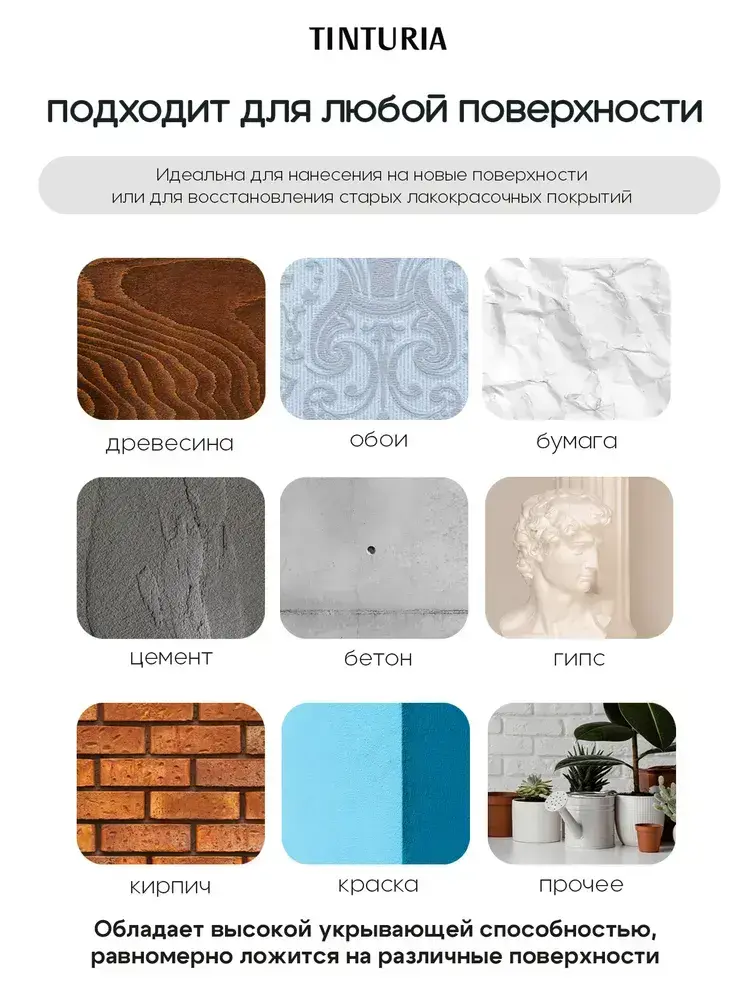 Краска для мебели и декора меловая TINTURIA матовая без запаха голубая диадема 0,35 кг