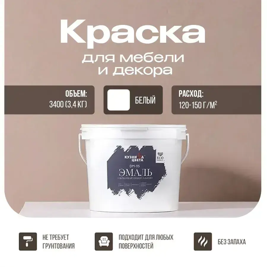 Краска для мебели и дерева без запаха белый 2.7 л
