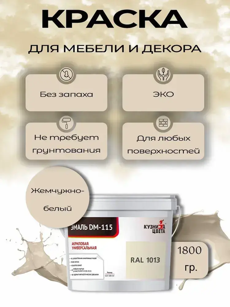 Краска для мебели и дерева без запаха Слоновая кость 1.5л