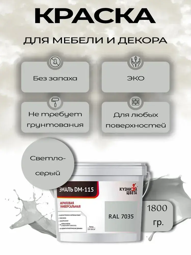 Краска для мебели и дерева без запаха Светло-серый 1,5л
