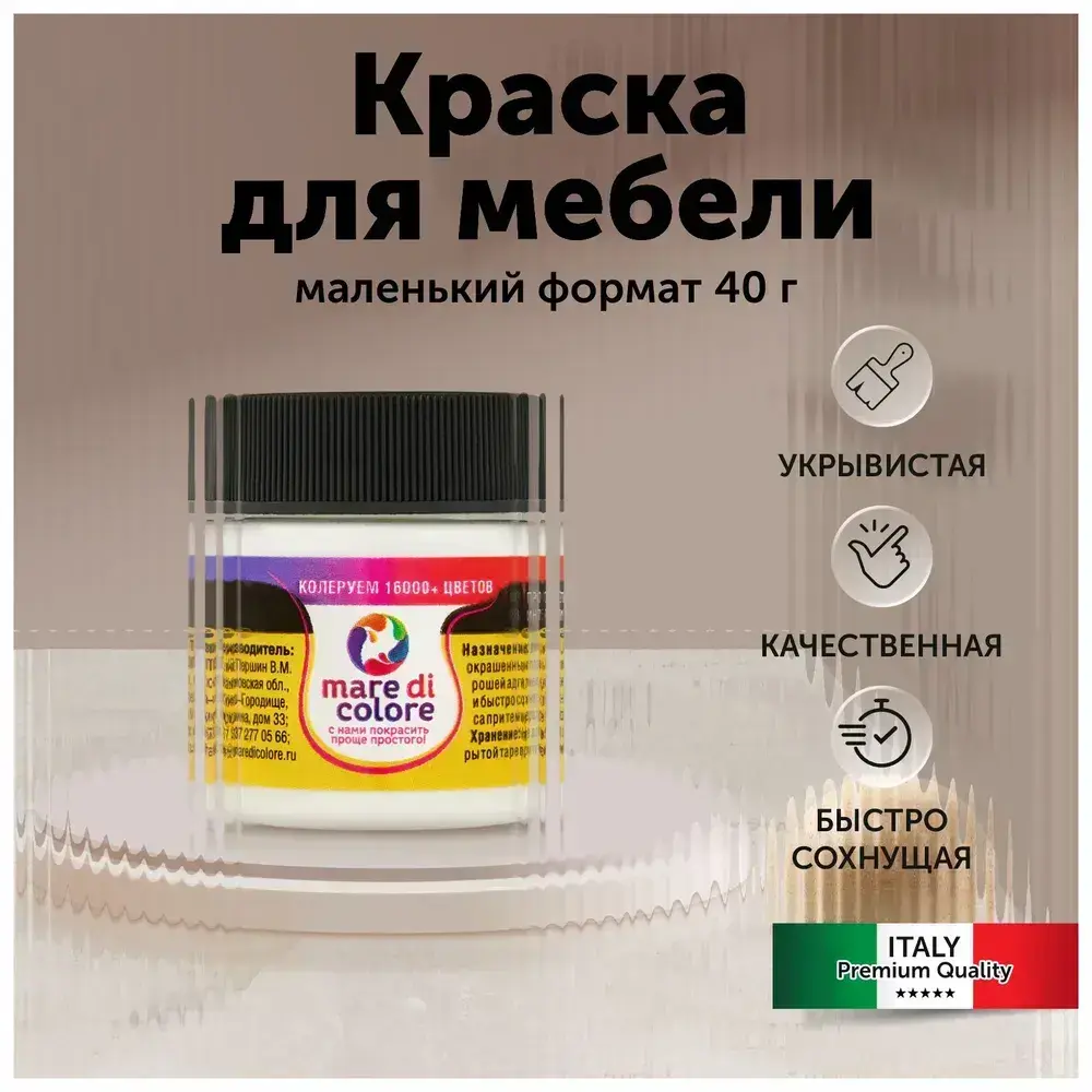 Краска для мебели по дереву без запаха быстросохнущая матовая водная Черный дым 40 г