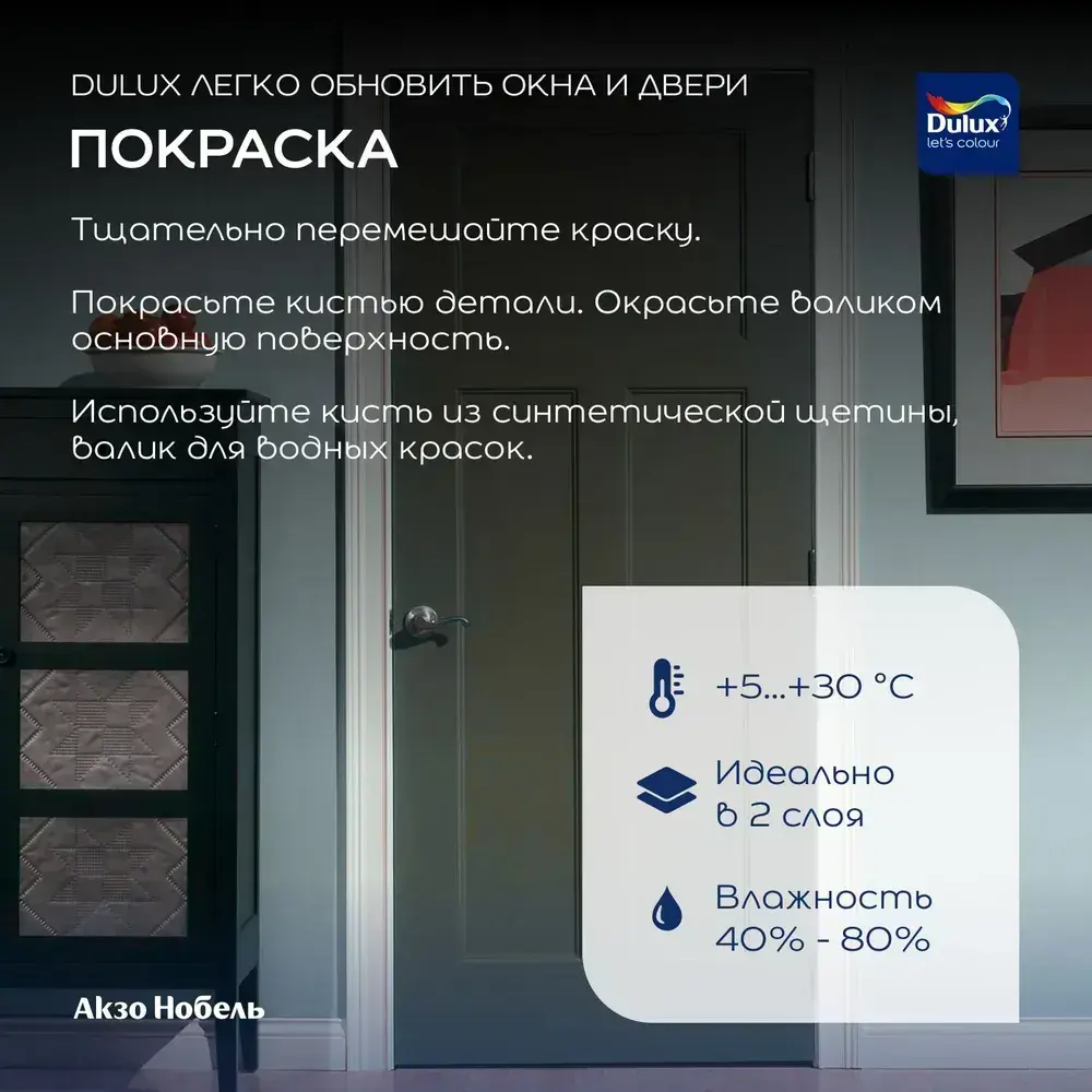 Краска для окон и дверей на водной основе Dulux Окна и двери полуматовая база BС 0,75 л