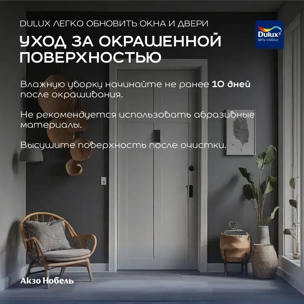Краска для окон и дверей на водной основе Dulux Окна и двери полуматовая база BW 0,75 л.