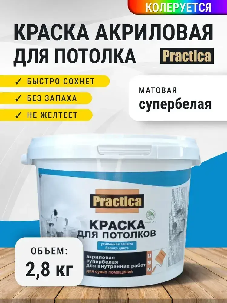 Краска ДЛЯ ПОТОЛКА 2,8кг СУПЕРБЕЛАЯ PRACTICA