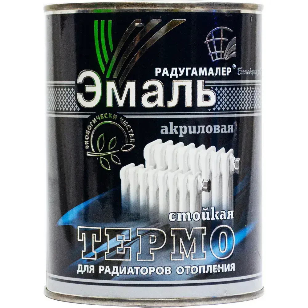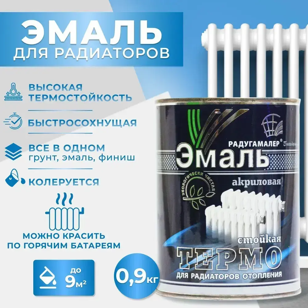 Краска для радиаторов отопления, батарей и труб термостойкая, акриловая, без запаха, белая 0,9 кг РАДУГАМАЛЕР / быстросохнущая, полуглянцевая, эмаль для радиаторов и труб