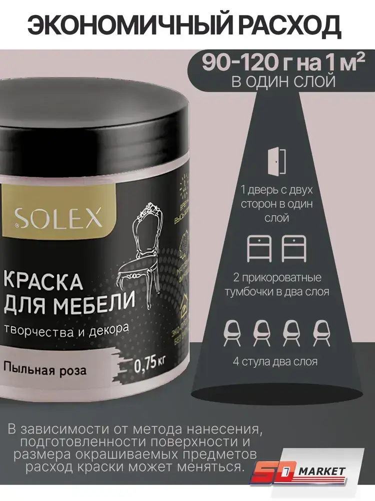 Краска для стен и мебели розово серая 750 гр , SOLEX пыльная роза