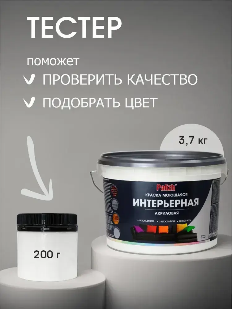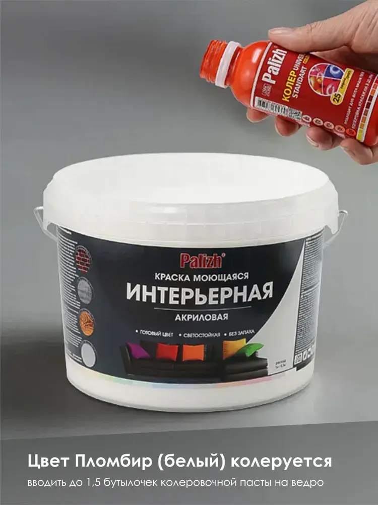 Краска для стен, обоев и потолков акриловая моющаяся интерьерная матовая белая белоснежная пломбир Palizh 3,7 кг