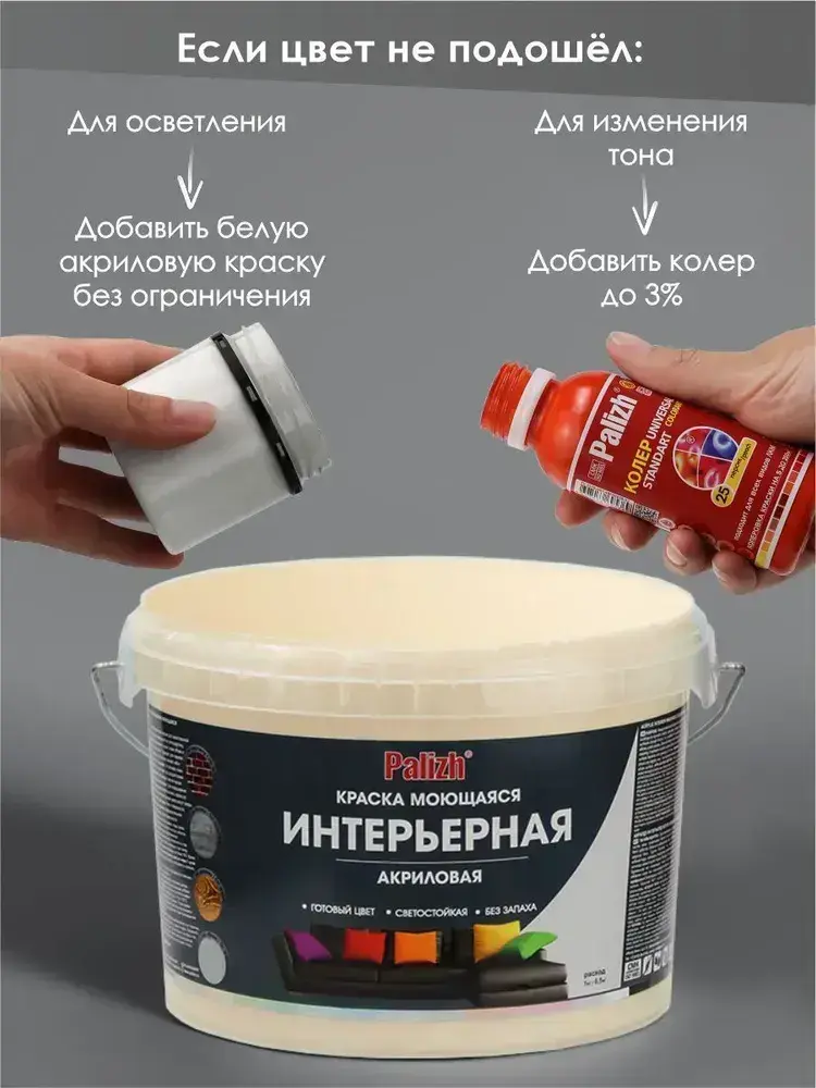 Краска для стен, обоев и потолков акриловая моющаяся интерьерная матовая цветная серый туман RAL 7000 Palizh 3,7 кг