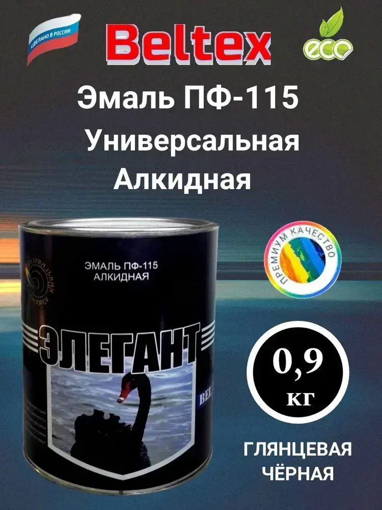 Краска Эмаль черная /элегант/ ПФ-115 Белтекс 0.9 кг по дереву, металлу, кирпичу и бетону, для наружных и внутренних работ